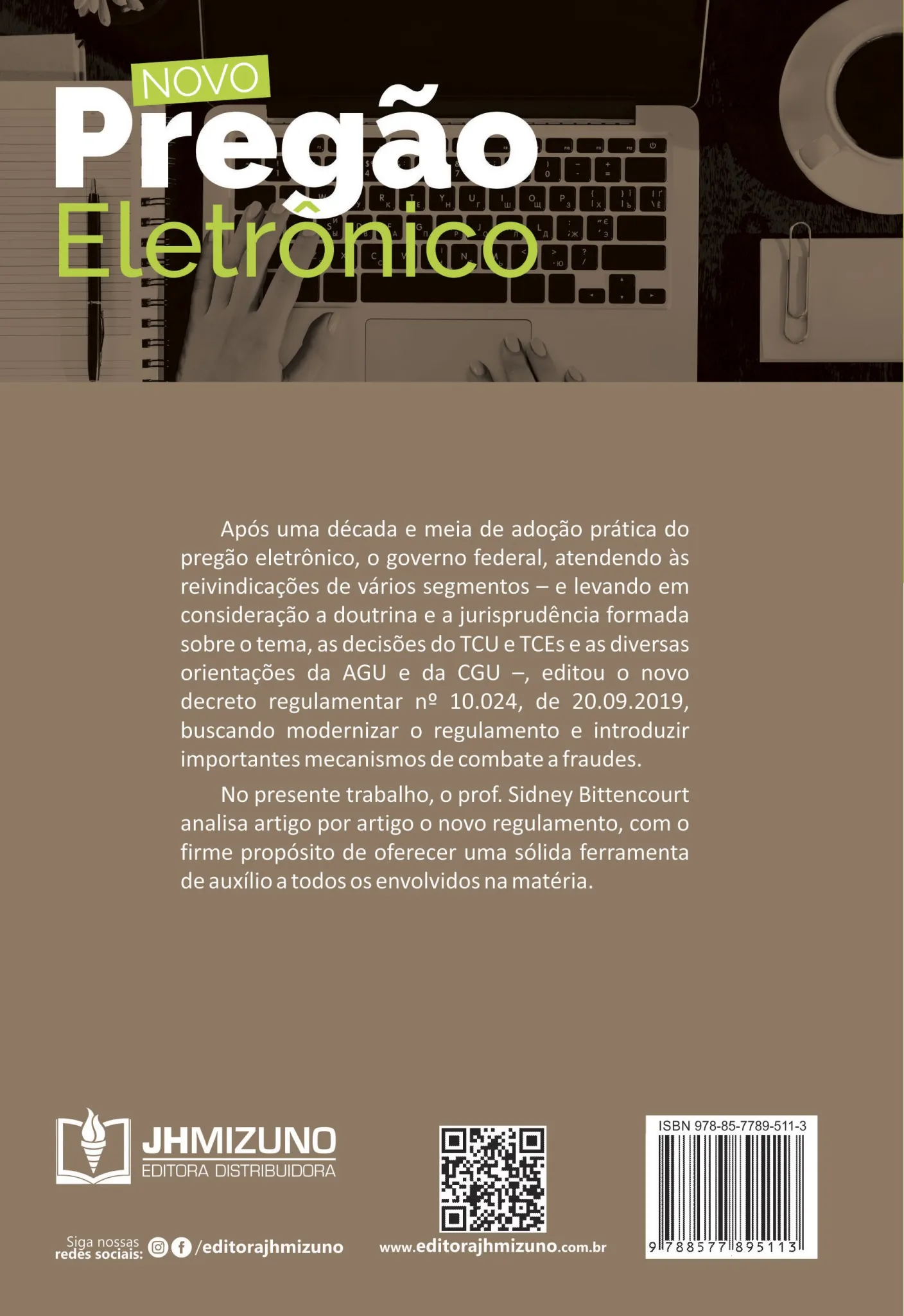 Após uma década e meia de adoção prática do pregão eletrônico, o governo federal, atendendo às reivindicações de vários segmentos – e levando em consideração a doutrina e a jurisprudência formada sobre o tema, as decisões do TCU e TCEs e as diversas orientações da AGU e da CGU –, editou o novo decreto regulamentar nº 10.024, de 20.09.2019, buscando modernizar o regulamento e introduzir importantes mecanismos de combate a fraudes. No presente trabalho, o prof. Sidney Bittencourt analisa artigo por artigo o novo regulamento, com o firme propósito de oferecer uma sólida ferramenta de auxílio a todos os envolvidos na matéria.
