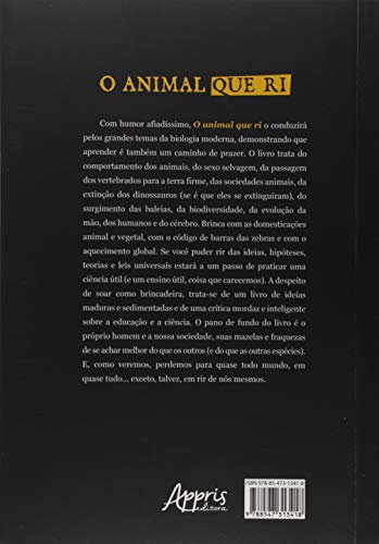 Com humor afiadíssimo, O animal que ri o conduzirá pelos grandes temas da biologia moderna, demonstrando que aprender é também um caminho de prazer. O livro trata do comportamento dos animais, do sexo selvagem, da passagem dos vertebrados para a terra firme, das sociedades animais, da extinção dos dinossauros (se é que eles se extinguiram), do surgimento das baleias, da biodiversidade, da evolução da mão, dos humanos e do cérebro. Brinca com as domesticações animal e vegetal, com o código de barras das zebras e com o aquecimento global. Se você puder rir das ideias, hipóteses, teorias e leis universais estará a um passo de praticar uma ciência útil (e um ensino útil, coisa que carecemos). A despeito de soar como brincadeira, trata-se de um livro de ideias maduras e sedimentadas e de uma crítica mordaz e inteligente sobre a educação e a ciência. O pano de fundo do livro é o próprio homem e a nossa sociedade, suas mazelas e fraquezas de se achar melhor do que os outros (e do que as outras espécies). E, como veremos, perdemos para quase todo mundo, em quase tudo… exceto, talvez, em rir de nós mesmos.