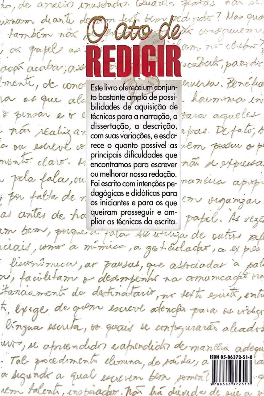 Este livro oferece um conjunto bastante amplo de possibilidades de aquisição de técnicas para a narração, a dissertação, a descrição, com suas variações, e esclarece o quanto possível as principais dificuldades que encontramos para escrever ou melhorar nossa redação. Foi escrito com intenções pedagógicas e didáticas para os iniciantes e para os que queiram prosseguir e ampliar as técnicas da escrita.