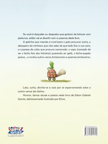 Poemas para quem gosta de brincar com palavras. A galinha que manda e-mail para o galo procurar outra, o desespero da minhoca que não sabe de que lado fica a sua cara, a surpresa da cotia que procura namorado, o sapo cansado de ser o bicho feio das histórias e se declara galã, o bicho-papão guloso… e muitos outros versos e poemas bicharentos.