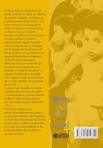 Os textos que compõe a presente coletânea têm como foco de análise a caracterização e o desenvolvimento do Bolsa Família em dos Estados dos mais pobres do país: Maranhão e Piauí. É atribuído destaque a um esforço de problematização sobre o processo de unificação dos Programas de Transferência de Renda, de mdoo a pontuar alguns aspectos fundamentais no campo das potencialidades e dos limites da política de transferência de renda no Brasil.