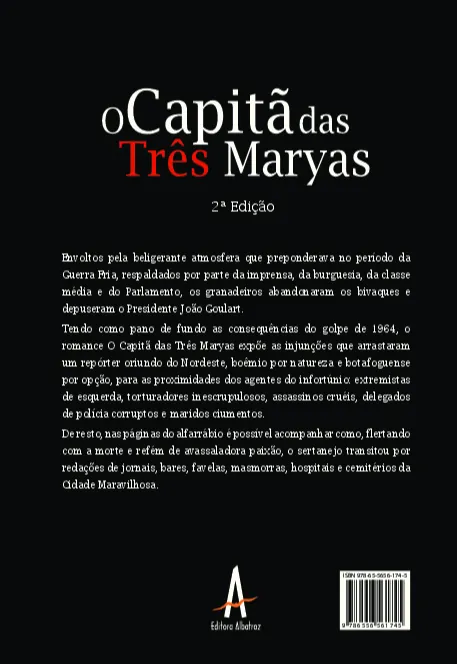 Envoltos pela beligerante atmosfera que preponderava no período da Guerra Fria, respaldados por parte da imprensa, da burguesia, da classe média e do Parlamento, os granadeiros abandonaram os bivaques e depuseram o Presidente João Goulart. Tendo como pano de fundo as consequências do golpe de 1964, o romance O Capitã das Três Maryas expõe as injunções que arrastaram um repórter oriundo do Nordeste, boêmio por natureza e botafoguense por opção, para as proximidades dos agentes do infortúnio: extremistas de esquerda, torturadores inescrupulosos, assassinos cruéis, delegados de polícia corruptos e maridos ciumentos. De resto, nas páginas do alfarrábio é possível acompanhar como, flertando com a morte e refém de avassaladora paixão, o sertanejo transitou por redações de jornais, bares, favelas, masmorras, hospitais e cemitérios da Cidade Maravilhosa.