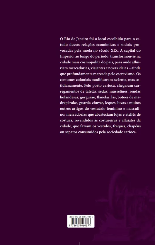 Este livro mapeia quais eram os principais tecidos que entravam no país pelo porto do Rio de Janeiro, de que maneira esses tecidos eram transformados em roupa e, finalmente, vendidos na rua do Ouvidor. Assim, ao estudar o consumo de roupas no Rio de Janeiro imperial, podemos perceber como se caracterizava o nascente capitalismo nacional, dentro das transformações globais ocorridas durante a Revolução Industrial.