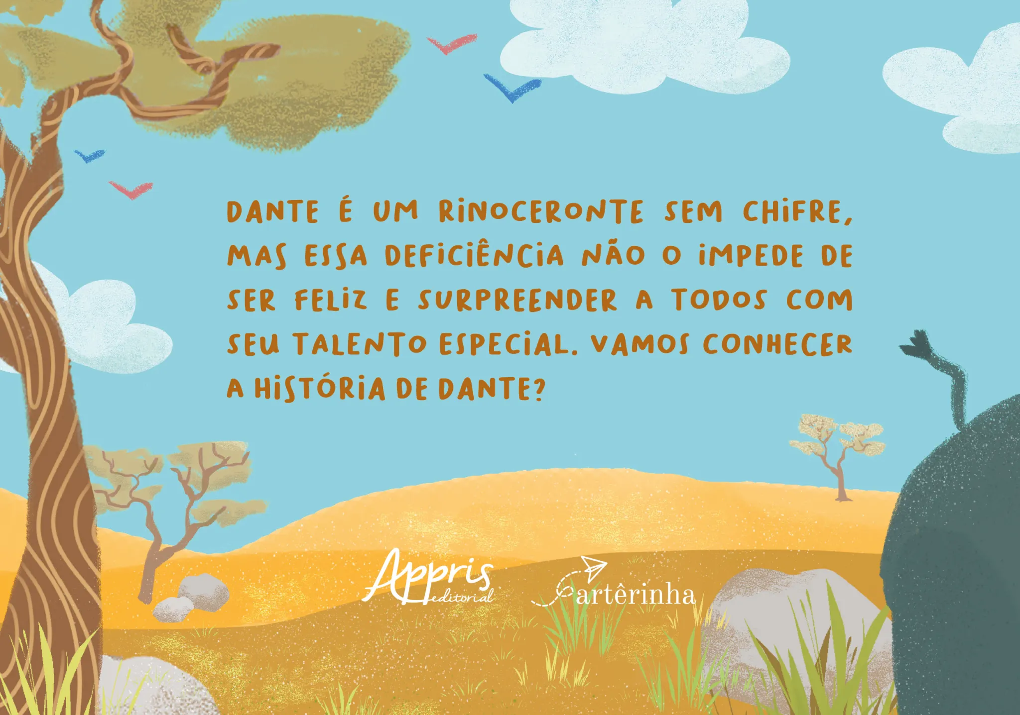Dante é um rinoceronte sem chifre, mas essa deficiência não o impede de ser feliz e surpreender a todos com seu talento especial. Vamos conhecer a história de Dante?
