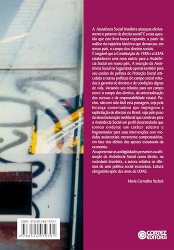 Este livro tem como foco de análise a assistência social, buscando apreendê-la no movimento da constituição de direitos no Brasil. A autora estuda as Constituições Federais promulgadas entre 1930 e 1985, analisando a relação existente entre esses estatutos legais e os diferentes contextos e eventos da realidade do país.