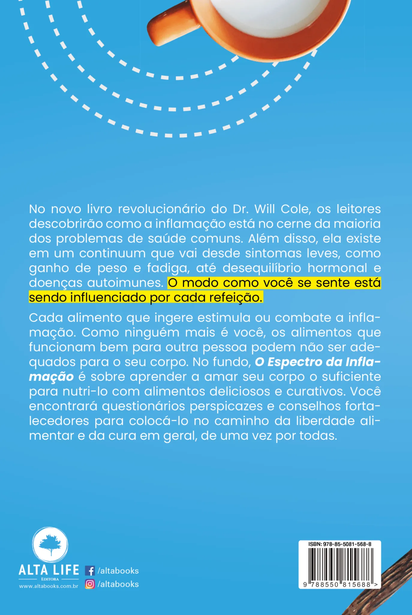 No novo livro revolucionário do Dr. Will Cole, os leitores descobrirão como a inflamação está no cerne da maioria dos problemas de saúde comuns. Além disso, ela existe em um continuum que vai desde sintomas leves, como ganho de peso e fadiga, até desequilíbrio hormonal e doenças autoimunes. O modo como você se sente está sendo influenciado por cada refeição. Cada alimento que ingere estimula ou combate a inflamação. Como ninguém mais é você, os alimentos que funcionam bem para outra pessoa podem não ser adequados para o seu corpo. No fundo, O Espectro da Inflamação é sobre aprender a amar seu corpo o suficiente para nutri-lo com alimentos deliciosos e curativos. Você encontrará questionários perspicazes e conselhos fortalecedores para colocá-lo no caminho da liberdade alimentar e da cura em geral, de uma vez por todas.