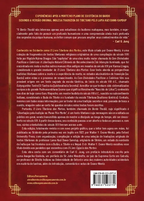 Especificação: O livro tibetano dos mortos: Experiências pós-morte no plano do bardo, segundo a versão do Lama Kazi Dawa-Samdup