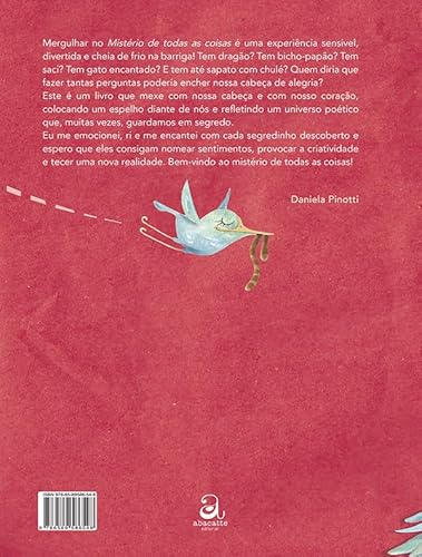 Esta antologia traz poemas curtos bem humorados e líricos que falam de mistérios e despertam a sensibilidade do leitor para perceber monstros, dragão, lugares escuros, bicho-papão, tênis de chulé e até sonhos e pesadelos. Basta ler os poemas e as imagens com olhos de criança para acordar lembranças, sentimentos e imaginar novas histórias também carregadas de mistérios.