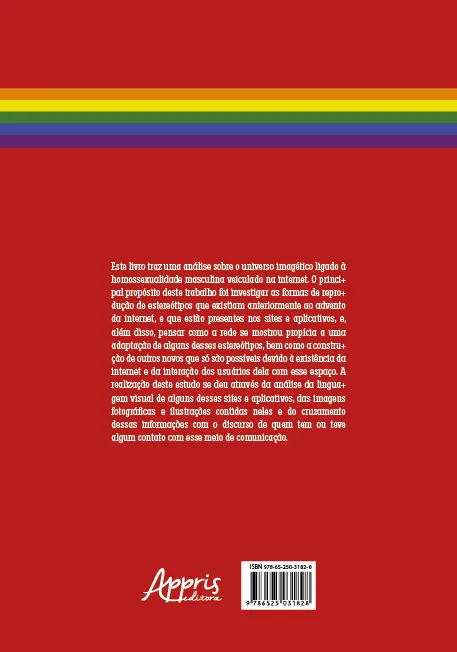 Este livro traz uma análise sobre o universo imagético ligado à homossexualidade masculina veiculado na internet. O principal propósito deste trabalho foi investigar as formas de reprodução de estereótipos que existiam anteriormente ao advento da internet, e que estão presentes nos sites e aplicativos, e, além disso, pensar como a rede se mostrou propícia a uma adaptação de alguns desses estereótipos, bem como a construção de outros novos que só são possíveis devido à existência da internet e da interação dos usuários dela com esse espaço. A realização deste estudo se deu através da análise da linguagem visual de alguns desses sites e aplicativos, das imagens fotográficas e ilustrações contidas neles e do cruzamento dessas informações com o discurso de quem tem ou teve algum contato com esse meio de comunicação.