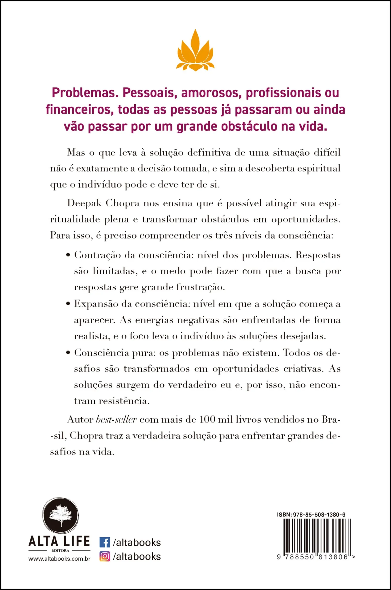 Autor best-seller com mais de 100 mil livros vendidos no Brasil, Chopra traz a verdadeira solução para enfrentar grandes desafios na vida.