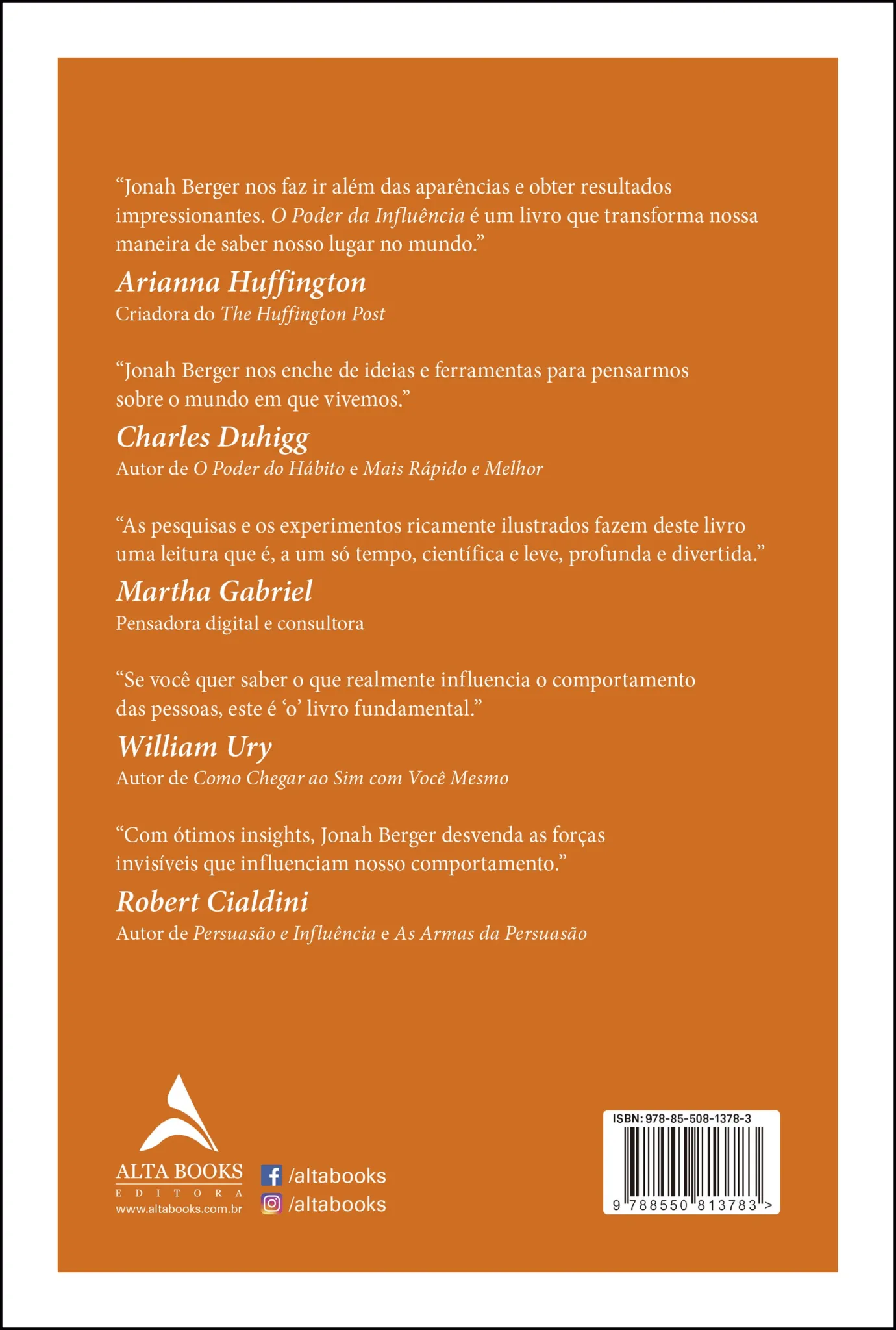 “Jonah Berger nos faz ir além das aparências e obter resultados impressionantes. O Poder da Influência é um livro que transforma nossa maneira de saber nosso lugar no mundo.” – Arianna Huffington Criadora do The Huffington Post.