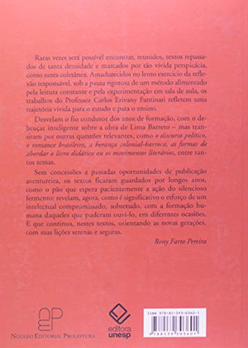 A obra de Lima Barreto e a visão do escritor sobre a mulher e o negro; o amor, da perspectiva do personagem Riobaldo, de Guimarães Rosa; o livro Cadeiras proibidas, de Ignácio de Loyola Brandão, segundo um conceito literário surgido ainda na antiguidade; a letra da música Feijão maravilha, de Gonzaguinha, à luz do processo dialético da aprendizagem. Estes são alguns dos vários temas de que Carlos Erivany Fantinati se ocupa nesta obra, sintetizando sua longa carreira acadêmica.