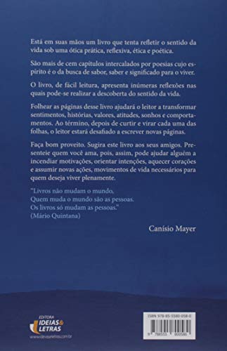 Está em suas mãos um livro que tenta refletir o sentido da vida sob uma ótica prática, reflexiva, ética e poética. O livro, de fácil leitura, apresenta inúmeras reflexões nas quais o sentido da vida deseja nos encontrar.