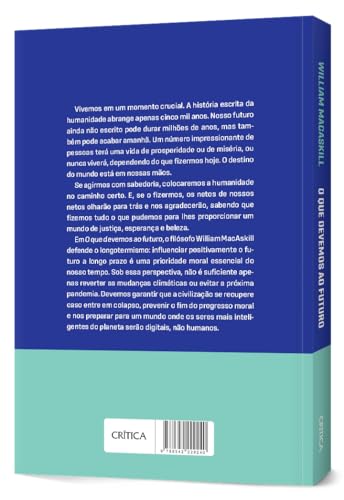 Conheça o longotermismo e o que podemos fazer para garantir o futuro da humanidade Vivemos em um momento crucial. A história escrita da humanidade abrange apenas cinco mil anos. Nosso futuro ainda não escrito pode durar milhões de anos, mas também pode acabar amanhã. Um número impressionante de pessoas terá uma vida de prosperidade ou de miséria, ou nunca viverá, dependendo do que fizermos hoje. O destino do mundo está em nossas mãos. Se agirmos com sabedoria, colocaremos a humanidade no caminho certo. E, se o fizermos, os netos de nossos netos olharão para trás e nos agradecerão, sabendo que fizemos tudo o que pudemos para lhes proporcionar um mundo de justiça, esperança e beleza. Em O que devemos ao futuro, o filósofo William MacAskill defende o longotermismo: influenciar positivamente o futuro a longo prazo é uma prioridade moral e essencial do nosso tempo. Sob essa perspectiva, não é suficiente apenas reverter as mudanças climáticas ou evitar a próxima pandemia. Devemos garantir que a civilização se recupere caso entre em colapso, prevenir o fim do progresso moral e nos preparar para um mundo onde os seres mais inteligentes do planeta serão digitais, não humanos.
