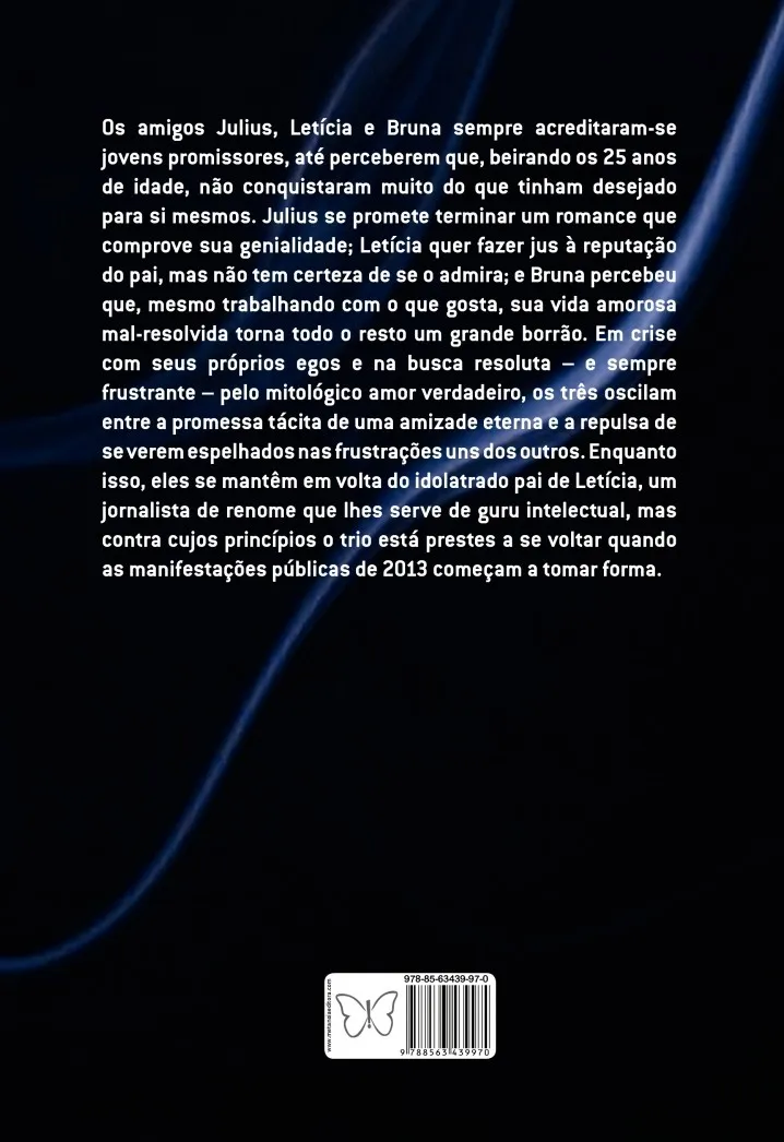 Os amigos Julius, Letícia e Bruna sempre acreditaram-se jovens promissores, até perceberem que, beirando os 25 anos de idade, não conquistaram muito do que tinham desejado para si mesmos. Julius se promete terminar um romance que comprove sua genialidade; Letícia quer fazer jus à reputação do pai, mas não tem certeza de se o admira; e Bruna percebeu que, mesmo trabalhando com o que gosta, sua vida amorosa mal-resolvida torna todo o resto um grande borrão. Em crise com seus próprios egos e na busca resoluta – e sempre frustrante – pelo mitológico amor verdadeiro, os três oscilam entre a promessa tácita de uma amizade eterna e a repulsa de se verem espelhados nas frustrações uns dos outros. Enquanto isso, eles se mantêm em volta do idolatrado pai de Letícia, um jornalista de renome que lhes serve de guru intelectual, mas contra cujos princípios o trio está prestes a se voltar quando as manifestações públicas de 2013 começam a tomar forma.