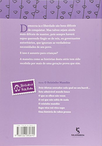 Mais uma instigante narrativa em versos da série O Reizinho Mandão, em O que os olhos não veem a Ruth Rocha inventou um rei com uma doença grave (que todo mundo conhece bem!): ele não via quem fosse pequeno e tivesse voz fraca; só enxergava os grandalhões com vozeirão. Por causa disso, acabou não tendo olhos para o povo, que é sempre pequeno e sem voz. E, como o que os olhos não veem o coração não sente, as pessoas viviam mal e o reizinho cego não estava nem aí. Por isso,