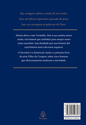 Da renomada autora de livros cristãos, Francine Rivers, uma nova história de fé. Moisés abriu o Mar Vermelho. Mas à sua sombra estava Aarão, um homem que simboliza para sempre nosso grande Sumo Sacerdote. Seja desafiado por este homem fiel cuja história nunca devemos esquecer. O Sacerdote é a história de Aarão e o primeiro livro da popular série Filhos da Coragem sobre cinco homens que silenciosamente mudaram a eternidade.