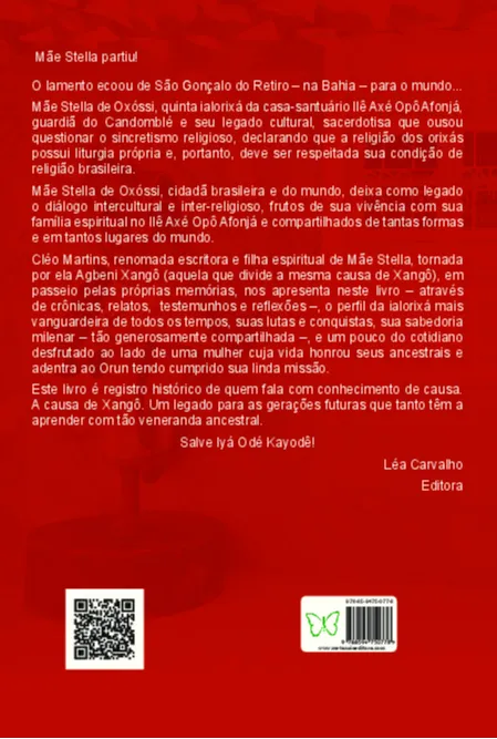 Mais do que um livro de memórias, que tem como pano de fundo a intensa convivência e discipulado que a autora manteve com MÃE STELLA DE OXÓSSI, durante muitos anos vividos no AXÉ OPÔ AFONJÁ, é uma obra de louvor à vida: o mosaico multicolorido de vivências, no passar do tempo. Cléo Martins desenha com sensibilidade e respeito o perfil de uma das ialorixás mais respeitadas das últimas décadas do século XX e início do século XXI. Personalidades e acontecimentos marcantes permeiam as páginas deste livro cuja leitura é saborosa. Na certeza de que somos mortais imortalizados por nossos frutos de fé, amor e esperança.