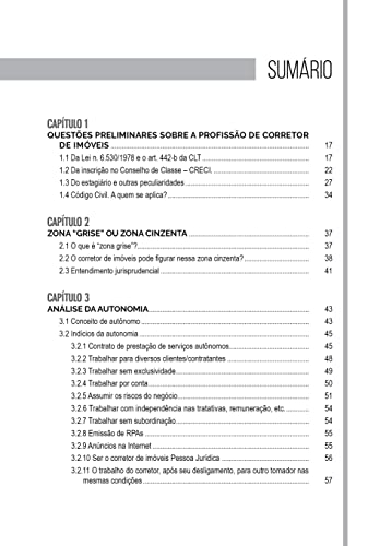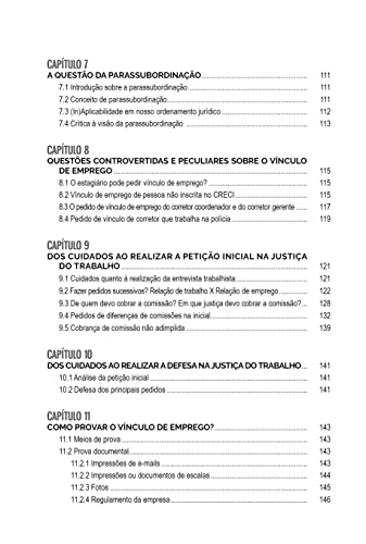 Livro que trata da caracterização do vínculo de emprego do corretor de imóveis com aspecto prático, abordando legislação específica, formas de enquadramento, o verdadeiro corretor autônomo, formas de contratação, contratos de associação, pedidos possíveis ante descumprimento legal, honorários não pagos, diferença nos pagamentos, entre tantos temas específicos destes profissionais. Enfim, referido livro possibilita ao estudioso do Direito do Trabalho mergulhar na profissão dos corretores de imóveis e na problemática da caracterização do vínculo empregatício.