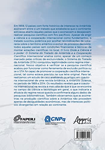 Em 1959, 12 países com forte histórico de interesse na Antártida assinaram entre si um tratado que estabelecia que o continente estivesse aberto àqueles países que o assinassem e desejassem realizar pesquisa científica com fins pacíficos. Apesar de erigir a ciência e a cooperação internacional como fundamentos, o tratado suscitou polêmica por acolher reivindicações de soberania sobre o território antártico e excluir do processo decisório todos aqueles países sem condições financeiras e técnicas de montar estações científicas no local. O livro Onde a Ciência é o poder: O Sistema do Tratado da Antártida e a Cooperação Científica Internacional analisa como, apesar de um começo marcado pelas críticas de exclusividade, o Sistema do Tratado da Antártida (STA) conquistou legitimidade como regime internacional. Nosso objetivo é verificar se a pesquisa científica acabou por funcionar como ferramenta de exclusão política ou se o STA foi capaz de promover a cooperação científica internacional, tal como estava previsto na sua letra original. Para tal, realizamos um estudo de caso analisando os artigos em coautoria internacional de uma revista britânica, a Antarctic Science, no período de 1989 a 2014. Os resultados revelam que a coautoria internacional na revista é mais alta do que a que se encontra no campo da ciência e tecnologia em geral, o que indicaria a eficácia do regime nesse quesito e confirmaria alguns dados de pesquisas bibliométricas. Também observamos que as assimetrias na produção científica sobre a Antártica não procedem apenas de desigualdades econômicas, mas de interesses políticos divergentes em relação ao continente.