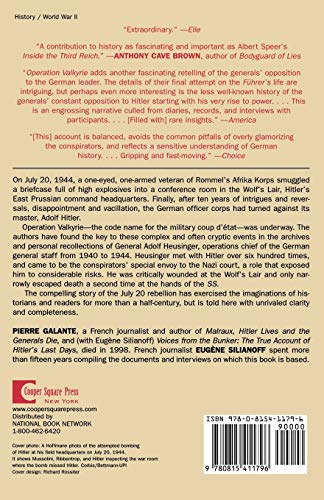 The bomb that exploded in the “Wolf’s Lair”-Hitler’s command headquarters-on July 20th, 1944 was the closest any assassination attempt ever came to ridding the world of the Nazis’ Führer. Pierre Galante’s account of the years that led up to the attempt, and its grim aftermath, offers an illuminating look at how dissent among the German officer corps grew until something had to be done. Conspirator General Adolf Heusinger, who met with Hitler on hundreds of occasions, provides his personal accounts of the disintegrating obedience of the German commanders as the war turned against them. Their plan to kill Hitler, establish a provisional government, and negotiate with the Allies for peace-known as Operation Valkyrie-is described here in depth.