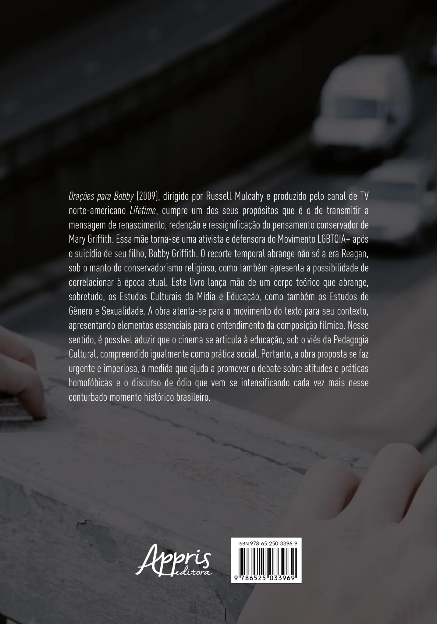 Orações para Bobby (2009), dirigido por Russell Mulcahy e produzido pelo canal de TV norte-americano Lifetime, cumpre um dos seus propósitos que é o de transmitir a mensagem de renascimento, redenção e ressignificação do pensamento conservador de Mary Griffith. Essa mãe torna-se uma ativista e defensora do Movimento LGBTQIA+ após o suicídio de seu filho, Bobby Griffith. O recorte temporal abrange não só a era Reagan, sob o manto do conservadorismo religioso, como também apresenta a possibilidade de correlacionar à época atual. Este livro lança mão de um corpo teórico que abrange, sobretudo, os Estudos Culturais da Mídia e Educação, como também os Estudos de Gênero e Sexualidade. A obra atenta-se para o movimento do texto para seu contexto, apresentando elementos essenciais para o entendimento da composição fílmica. Nesse sentido, é possível aduzir que o cinema se articula à educação, sob o viés da Pedagogia Cultural, compreendido igualmente como prática social. Portanto, a obra proposta se faz urgente e imperiosa, à medida que ajuda a promover o debate sobre atitudes e práticas homofóbicas e o discurso de ódio que vem se intensificando cada vez mais nesse conturbado momento histórico brasileiro.