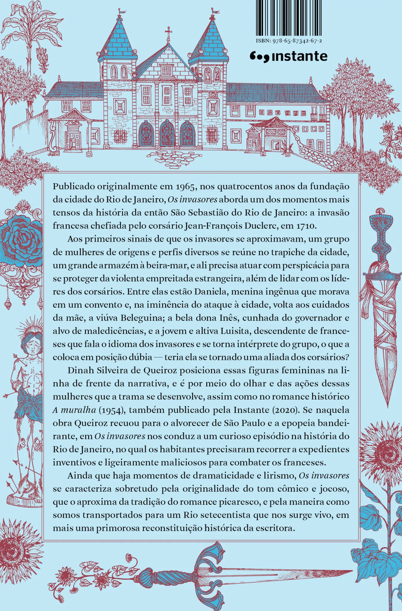 Dinah Silveira de Queiroz posiciona essas figuras femininas na linha de frente da narrativa, e é por meio do olhar e das ações dessas mulheres que a trama se desenvolve, assim como no romance histórico A muralha (1954), também publicado pela Instante (2020). Se naquela obra Queiroz recuou para o alvorecer de São Paulo e a epopeia bandeirante, em Os invasores nos conduz a um curioso episódio na história do Rio de Janeiro, no qual os habitantes precisaram recorrer a expedientes inventivos e ligeiramente maliciosos para combater os franceses.