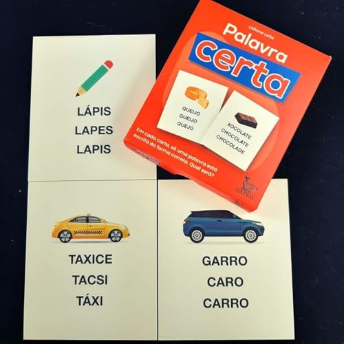 Este livro-caixinha® traz 40 cartas. Em cada uma há uma figura e três palavras. A criança precisa identificar qual delas está escrita de forma correta. Brincando e se divertindo, a criança vai ampliar o vocabulário e melhorar a capacidade de reconhecer palavras. Também vai desenvolver a atenção, a memória e o raciocínio lógico. Uma obra que vai ajudar professores, fonoaudiólogos, psicólogos e neuropsicopedagogos a trabalhar com as crianças. Indicação: a partir de 6 anos.