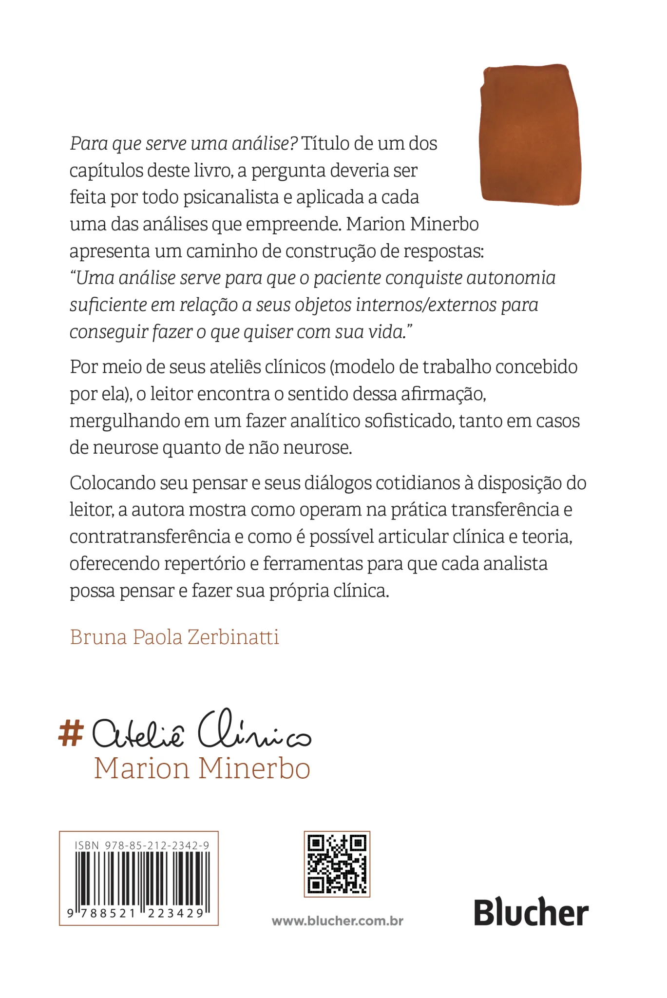 Para que serve uma análise? Título de um dos Colaboradoracapítulos deste livro, a pergunta deveria serfeita por todo psicanalista e aplicada a cadauma das análises que empreende. Marion Minerboapresenta um caminho de construção de respostas:“Uma análise serve para que o paciente conquiste autonomiasuficiente em relação a seus objetos internos/ externos paraconseguir fazer o que quiser com sua vida.”Por meio de seus ateliês clínicos (modelo de trabalho concebidopor ela), o leitor encontra o sentido dessa afirmação,mergulhando em um fazer analítico sofisticado, tanto em casosde neurose quanto de não neurose.Colocando seu pensar e seus diálogos cotidianos à disposição doleitor, a autora mostra como operam na prática transferência econtratransferência e como é possível articular clínica e teoria,oferecendo repertório e ferramentas para que cada analistapossa pensar e fazer sua própria clínica.Bruna Paola Zerbinatti