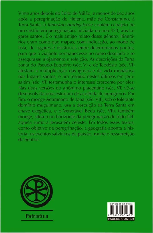 Especificação: Patrística – Terra Santa – Itinerários e Descrições – Séc. IV – VIII – Vol. 49/1: