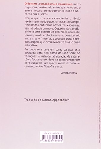 Didatismo, romantismo e classicismo são os esquemas possíveis do entrelaçamento entre arte e filosofia, sendo o terceiro termo a educação dos sujeitos. O que caracteriza o século recém-terminado é que, embora tenha experimentado a saturação desses três esquemas, não introduziu um novo. O que tende a produzir hoje uma espécie de desenlaçamento dos termos, um desrelacionamento desesperado entre arte e filosofia, e a queda pura e simples daquilo que circulava entre elas: o tema educativo.
