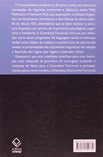 Esta coletânea traz um conjunto de textos baseados em dissertações de alunos do Programa de Pós-Graduação em Estudos Linguísticos da UNESP, campus de São José do Rio Preto, da área de Descrição e Análise Linguística, que tratam da aplicação do modelo da Gramática Funcional Padrão ao português oral e escrito. Os autores integram o Grupo de Pesquisa em Gramática Funcional (GPGF), que tem se destacado nacional e internacionalmente como um dos grupos funcionalistas mais atuantes na área. O livro pretende não só divulgar esse modelo teórico como também mostrar sua eficácia na descrição linguística, além de constituir a primeira obra em português a mostrar a contribuição dessa teoria para a descrição da língua portuguesa.