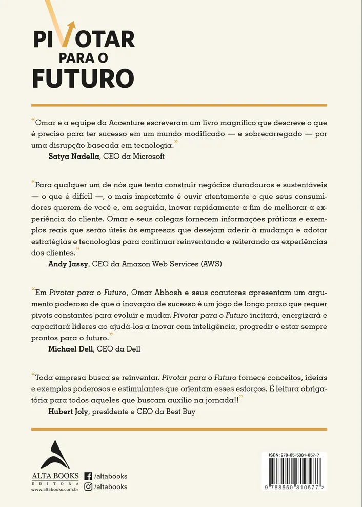 Omar Abbosh, Paul Nunes e Larry Downes revelam manobras metódicas e ousadas para identificar e liberar novas fontes de valor retido ao preencher a lacuna entre o que é tecnologicamente viável e como as tecnologias estão sendo usadas. O valor liberado possibilita que as empresas reinventem, ao mesmo tempo, seu legado e seus negócios atuais e novos. Este livro foi escrito com base na própria experiência da Accenture em se reinventar ante a disrupção, no seu trabalho com empresas ao redor do mundo e no estudo rigoroso realizado por dois anos com milhares de negócios em 30 setores. Pivotar para o Futuro é uma obra direcionada a líderes que buscam transformar as ameaças existenciais atuais e futuras em crescimento sustentável.