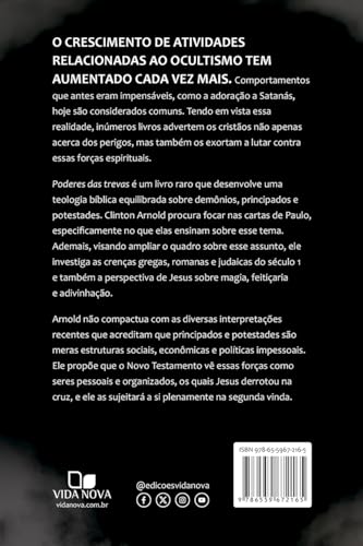 Poderes das trevas é um livro raro que desenvolve uma teologia bíblica equilibrada sobre demônios, principados e potestades. Clinton Arnold procura focar nas cartas de Paulo, especificamente no que elas ensinam sobre esse tema. Ademais, visando ampliar o quadro sobre esse assunto, ele investiga as crenças gregas, romanas e judaicas do século 1 e também a perspectiva de Jesus sobre magia, feitiçaria e adivinhação.