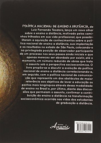 POLíTICA NACIONAL DE ENSINO A DISTâNCIA, de Luiz Fernando Teodoro, lança um novo olhar sobre o ensino a distância, motivado pelos caminhos trilhados em sua vida profissional, que possibilitaram a aquisição de conhecimentos sobre a política nacional de ensino a distância, sua implantação e os resultados no estado de São Paulo, colocando-o na privilegiada posição de observador participante de um processo nos seus passos ainda iniciais e que apenas mereceu ser abordado por existir, até o momento, um número reduzido de obras que trate o assunto sob a perspectiva socioeconômica. O livro propõe-se a discutir a evolução da política nacional de ensino a distância correlacionando-a, em seguida, com a política nacional de comunicação que representa um dos obstáculos de maior relevância aos objetivos de levar a educação os pontos mais longínquos através dessa modalidade de ensino no Brasil e, por último, diante das discussões que permeiam o assunto, confirmar a contribuição do ensino a distância na transformação socioeconômica ocorrida nas vidas dos estudantes de graduação a distância.