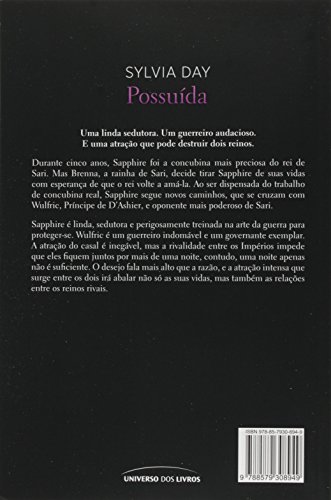 Sylvia Day, autora de maior sucesso no gênero erótico, cujos livros já foram publicados em mais de 40 países, traz mais um best-seller de tirar o fôlego de seus leitores. Quem suspirou com Obstinada, Desejada, Incontrolável e Dominadas não pode deixar de ler Possuída. Durante cinco anos, Sapphire tem sido a amante mais preciosa do Rei de Sari. Independente até o fim, ela se nega a ser dominada por outro homem. Contudo, seu caminho cruzou-se com o orgulhoso e arrogante Wulfric, príncipe do reino rival D’Ashier, um homem perigoso para ela em todos os sentidos. Filha do oponente mais poderoso de Wulfric, Sapphire é uma guerreira letal e altamente qualificada nas artes da sensualidade – a combinação perfeita para seduzir Wulfric. Uma união duradoura é impensável, contudo há um acordo: eles devem passar uma noite juntos, e então partir. Mas o desejo fala mais alto que a razão e a atração explosiva que surge entre os dois vai abalar as estruturas de suas vidas para sempre.