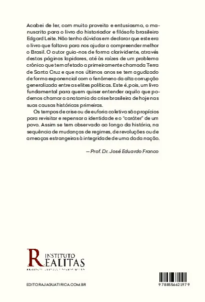 “Predadores: repensando o Brasil em seus fundamentos morais” é um livro sobre a história da formação moral brasileira. Edgard Leite discute os problemas morais do país em seus momentos fundadores, a partir da disputa central entre os brasileiros e os jesuítas, nos primeiros dois séculos de colonização. O autor propõe que a resistência a uma autoridade moral objetiva caracteriza o espírito original das relações sociais brasileiras, usualmente inclinadas para práticas morais subjetivistas ou relativistas. Tal realidade exerceu profunda influência sobre os elementos da identidade nacional, estabelecendo práticas e tradições com as quais lidamos ainda hoje. Com o prefácio do professor doutor José Eduardo Franco, esta publicação é mais uma importante contribuição para se pensar acerca dos fundamentos da sociedade brasileira, evitando, dessa forma, a ingênua consideração de que os males da nossa sociedade residiriam apenas em questões do presente, e que bastaria uma apreciação do agora para que soluções pudessem ser encontradas. O livro, no entanto, não deve ser visto como um tratado moral, uma obra de moralizador, mas antes um estudo sobre esse aspecto incontornável de qualquer sociedade.