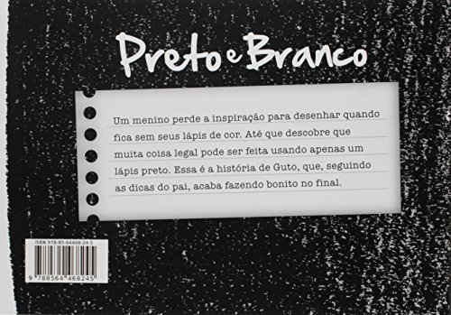 Um menino perde a inspiração para desenhar quando fica sem seus lápis de cor. Até que descobre que muita coisa legal pode ser feita usando apenas um lápis preto. Essa é a história de Guto, que, seguindo as dicas do pai, acaba fazendo bonito no final.rnrnO autor, Mauro Freitas, é um apaixonado por desenho. Desde pequeno bolava suas próprias histórias em quadrinhos para um dia publicá-las. Mas elas ficaram na gaveta. Muitas se perderam. Anos mais tarde, tornou-se pai e contava historinhas para seus filhos toda noite. Uma delas está neste livro, “Preto e Branco” que apresenta a resiliência de forma lúdica e é uma inspiração para pais auxiliarem seus filhos a enfrentar os problemas do dia a dia. Educadores e terapeutas da infância também têm um rico material para utilizar na escola ou no consultório.rnrnCONHEÇA O AUTORrnrnMauro FreitasrnIlustrador desde os primeiros anos de vida. Sempre gostou de desenhar e criar suas próprias histórias. Trabalhou em agência de publicidade e, nas horas vagas, ilustrava para algumas editoras. Entre um trabalho e outro, surgiu a oportunidade de publicar sua primeira obra literária: “Preto e Branco”. Posteriormente publicou mais alguns: “Ser ou Não Ser? Eis Itamar”, “Tem Monstro Aqui em Casa” e, seu livro mais recente “À Flor da Pele”, os três em parceria com amigas escritoras. Mauro tem 2 filhos, que adoram desenhar e também gostam de criar seus próprios universos.rnrnDADOS TÉCNICOSrnrnISBN: 978-85-64468-24-5rnFormato: 23x16cm | 32 Páginas | Peso: 112grnAcabamento: Capa grampeada