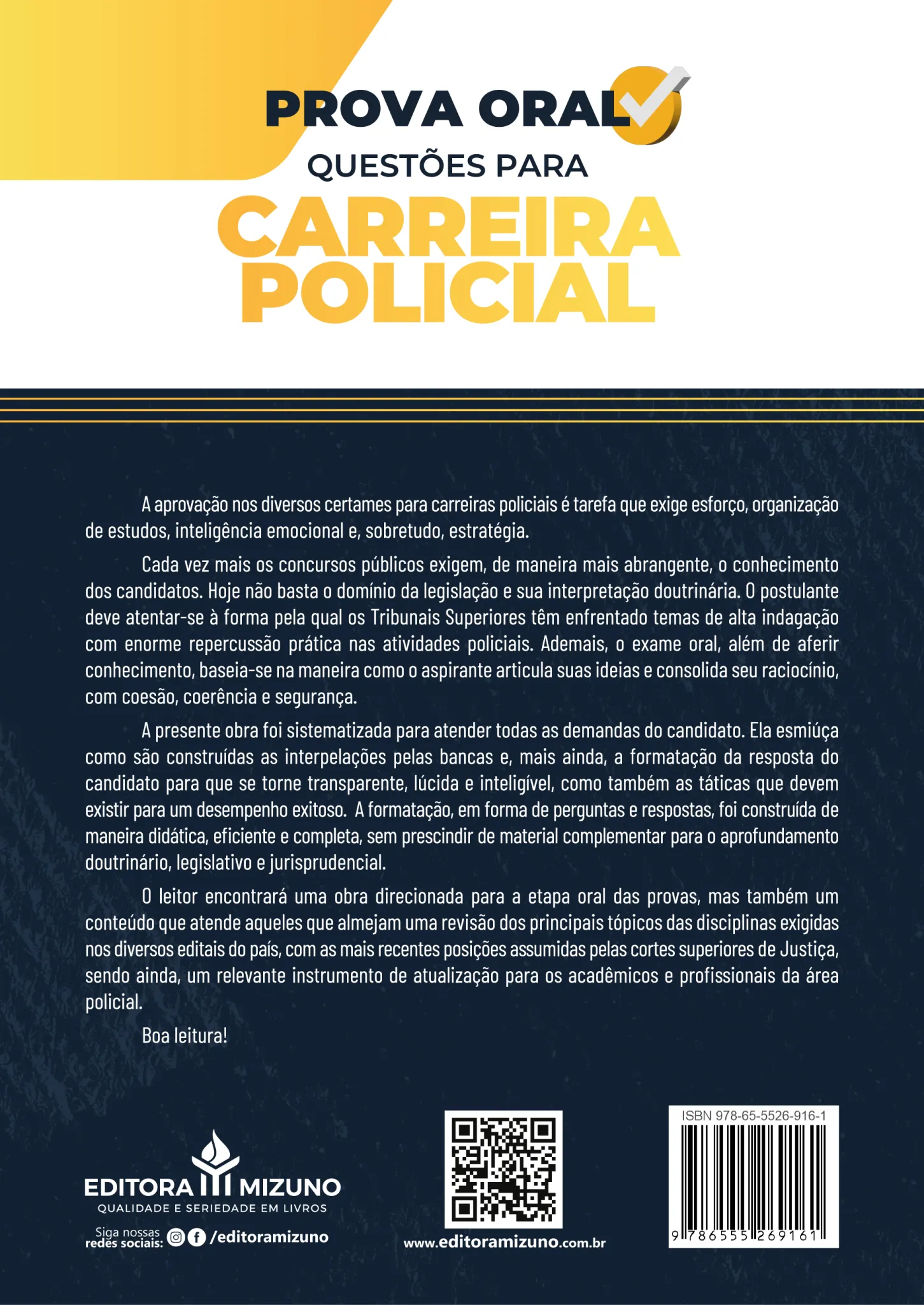 O leitor encontrará uma obra direcionada para a etapa oral das provas, mas também um conteúdo que atende aqueles que almejam uma revisão dos principais tópicos das disciplinas exigidas nos diversos editais do país, com as mais recentes posições assumidas pelas cortes superiores de Justiça, sendo ainda, um relevante instrumento de atualização para os acadêmicos e profissionais da área policial.