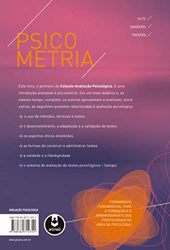 Primeiro livro da coleção Avaliação Psicológica, Psicometria é uma introdução concisa e acessível à área, em que os autores abordam: – o uso de métodos, técnicas e testes – o desenvolvimento, a adaptação e a validação de testes – os aspectos éticos envolvidos – as formas de construir e administrar testes – a validade e a fidedignidade – o sistema de avaliação de testes psicológicos – Satepsi
