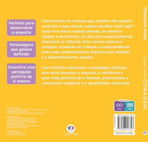 Cada livro desta coleção aborda, de maneira simples e envolvente, um dos seis comportamentos essenciais na infância. Este volume explora a coragem, ajudando as crianças a compreenderem como esse comportamento impacta suas relações e o desenvolvimento pessoal.