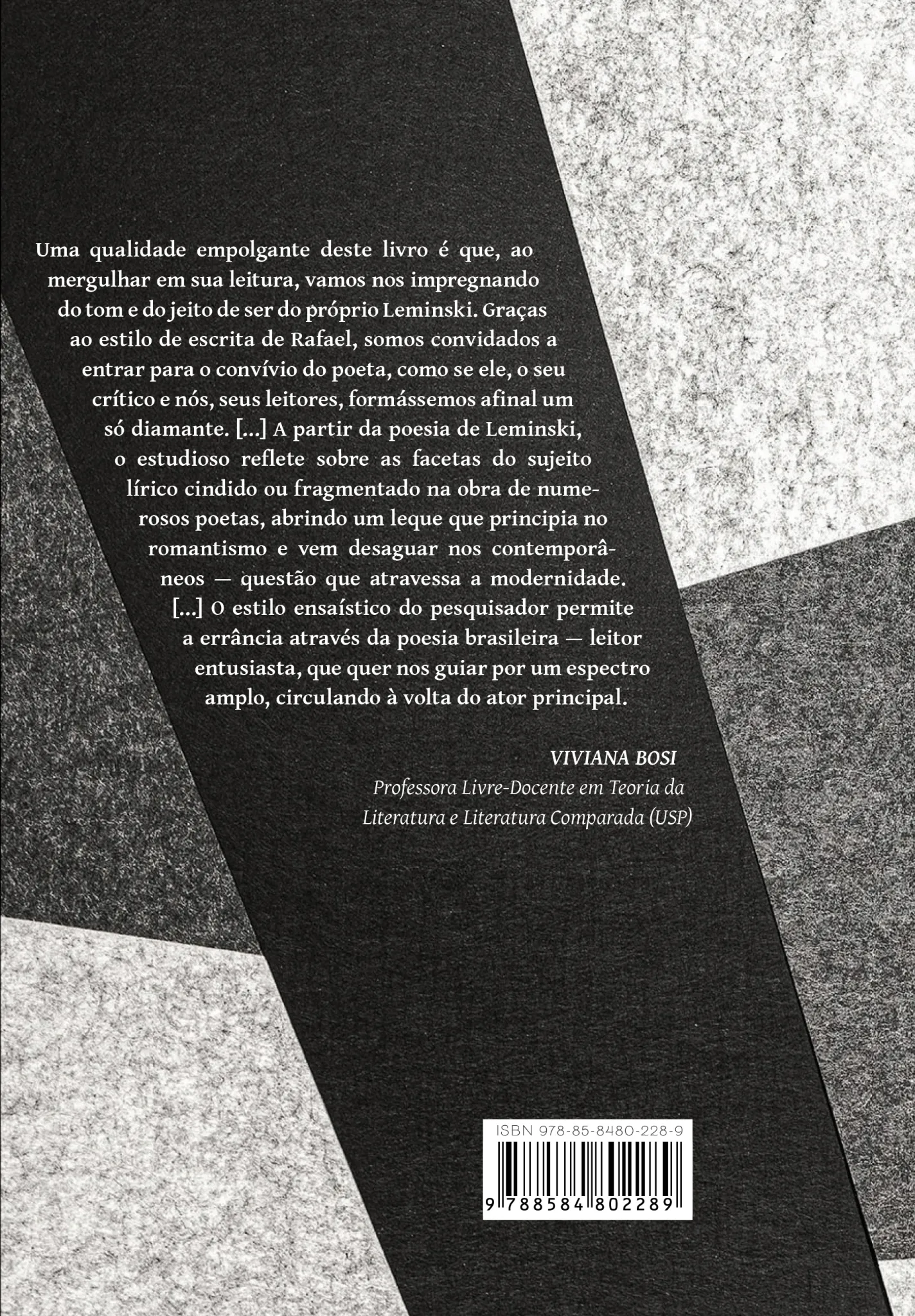 Uma qualidade empolgante deste livro é que, ao mergulhar em sua leitura, vamos nos impregnando do tom e do jeito de ser do próprio Leminski. Graças ao estilo de escrita de Rafael, somos convidados a entrar para o convívio do poeta, como se ele, o seu crítico e nós, seus leitores, formássemos afinal um só diamante. […] A partir da poesia de Leminski, o estudioso reflete sobre as facetas do sujeito lírico cindido ou fragmentado na obra de numerosos poetas, abrindo um leque que principia no romantismo e vem desaguar nos contemporâneos — questão que atravessa a modernidade. […] O estilo ensaístico do pesquisador permite a errância através da poesia brasileira — leitor entusiasta, que quer nos guiar por um espectro amplo, circulando à volta do ator principal. VIVIANA BOSI Professora Livre-Docente em Teoria da Literatura e Literatura Comparada (USP).