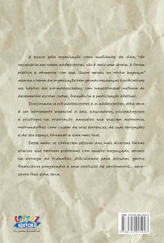 A busca pela organização como qualidade de vida, tão necessária aos nossos adolescentes, não é mais uma utopia. A forma prática e atraente com que Quem mexeu na minha bagunça? aborda o tema tem gerado mudanças significativas nos hábitos dos pré-adolescentes, com inquestionável melhora do desempenho escolar (notas, frequência e participação efetiva). Direcionada a pré-adolescentes e a adolescentes, esta obra é instrumento essencial a pais, educadores, psicopedagogos e psicólogos na orientação daqueles que buscam autonomia, mostrando-lhes como cuidar de seus pertences, de suas obrigações e de seu espaço, tonando a vida mais leve. Desse modo, se você conhece pessoas das mais diversas faixas etárias que tenham problemas com quarto bagunçado, atraso na entrega de trabalhos, dificuldade para estudar, gastos financeiros exagerados e uma confusão de sentimentos… apresente-lhes esta obra!
