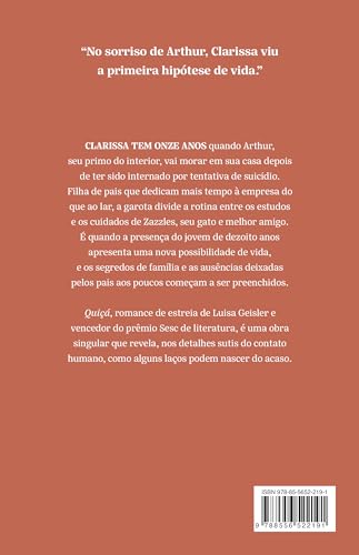 Quiçá, romance de estreia de Luisa Geisler e vencedor do prêmio Sesc de literatura, é uma obra singular que revela, nos detalhes sutis do contato humano, como alguns laços podem nascer do acaso. Arthur é um jovem de dezoito anos que passa a morar com os tios, Augusto e Lorena, depois de tentar suicídio. Donos de uma pequena agência de publicidade e reféns da rotina agitada de empresários, o casal tem uma filha de onze anos que vive reclusa e solitária. Clarissa é uma menina tranquila e aluna dedicada, mas tem poucos amigos e pais ausentes; seu maior companheiro é o gato Zazzles. Convivendo com a prima, Arthur se torna o único capaz de compreender e enxergar a essência de Clarissa. Ele passa a levá-la à casa de amigos, muitas vezes deixando a menina apenas na companhia deles enquanto fuma, bebe e sai com parceiros. Nesta história contada em dois tempos narrativos — um ano letivo e um almoço de Natal —, o leitor acompanha os altos e baixos dessa família de classe média urbana que, a partir de cenas fragmentadas, revela os segredos e as angústias que a assolam. Incertezas e possibilidades tomam conta das páginas de Quiçá, um romance de estreia brilhante que expõe, estética e textualmente, a complexidade das relações humanas.