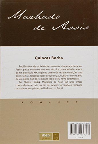 Rubião ascende socialmente com uma inesperada herança. Assim, passa a conviver nos altos círculos da sociedade carioca do fim do século 19. Ingênuo quanto às intrigas e traições que permeiam as relações nesse grupo social, Rubião se torna alvo de um golpe que põe em risco todo o seu novo patrimônio. Em Quincas Borba, Machado de Assis faz uma crítica contundente à corte do Rio de Janeiro, sendo considerada uma das obras-primas do autor e do realismo do Brasil.