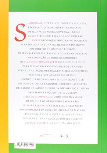 Sandokan, o terrível Tigre da Malásia, recuperou o trono que fora tomado de seus pais e agora governa o reino com o título de Rajá do Lago Kini Balu. Yanez reconquistou o reino do Assam para sua amada Surama, herdeira do trono por direito de sucessão e, depois de se casar com ela, passou a governar o estado na condição de príncipe consorte. Os Tigres de Mompracem estão em silêncio. Para eles acabaram-se os dias de grandes aventuras, ações ousadas, batalhas sangrentas. Mas será que acabaram mesmo? Conseguirão os nossos velhos heróis viver no conforto e na tranquilidade de suas cortes, deixando de lado o cheiro da pólvora e o tilintar das espadas, enquanto sua querida ilha de Mompracem continua nas mãos de um Sultão mesquinho e beberrão? Salgari responde a essas perguntas neste novo romance da coleção Piratas da Malásia, levando o leitor a viver as aventuras por mar e terra ao lado dos seus velhos conhecidos, os tigres de Mompracem. Depois de uma batalha sangrenta e de Surama ser resgatada pelos tigres de Mompracem, a Rani, de volta ao trono, governa com justiça o reino do assam, ao lado do príncipe consorte, o nosso velho conhecido Yanez de Gomera, antigo pirata que chefiava os tigres de Mompracem junto com Sandokan, o Tigre da Malásia. Mas o nosso herói não foi feito para a vida tranquila e pacífica da corte. Apesar de amar sua mulher, ele começa a se sentir entediado e a suspirar pelos dias de aventuras ao lado do seu irmão branco. E eis que surge a oportunidade de reviver a agitação e a glória dos seus dias de pirataria, quando os terríveis tigres fizeram tremer todo o Bornéu. Atendendo a um pedido de Sandokan, Yanez prepara o seu fantástico e rapidíssimo iate para se lançar à reconquista do antigo covil dos piratas da Malásia. Num gesto de extrema ousadia, afunda o navio a vapor que transportava o novo embaixador inglês nomeado para Varauni, apodera-se das credenciais dele depois de capturá-lo e se apresenta ao Sultão daquele estado como o enviado da grande Inglaterra, com a missão de proteger o sultanato de possíveis ataques dos piratas. Enquanto prepara o terreno para a chegada dos envelhecidos, mas sempre terríveis tigres, Yanez cai nas graças do Sultão, mas é obrigado a enfrentar o inconformado capitão da nave afundada, John Foster, que parece não ter outro objetivo além de desmascarar e enforcar o nosso herói. Contando com a ajuda de uma bela holandesa, que também estava na nave afundada, Yanez consegue escapar de todas as armadilhas preparadas pelo capitão inglês e se infiltra no bairro chinês para insuflar os filhos do Império Celestial, absolutamente inconformados com a política do Sultão em relação a eles. No momento crucial, pilotando seus pesados e resistentes juncos, esses súditos descontentes prestarão uma ajuda decisiva para a reconquista do antigo covil dos piratas.