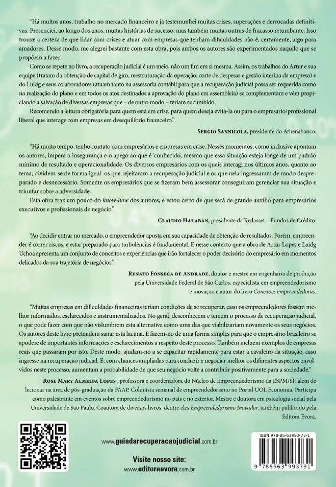 “Recomendo a leitura obrigatória para quem está em crise, para quem deseja evitá-la ou para o empresário/profissional liberal que interage com empresas em desequilíbrio financeiro.” SERGIO SANNICOLA, presidente do Athenabanco .