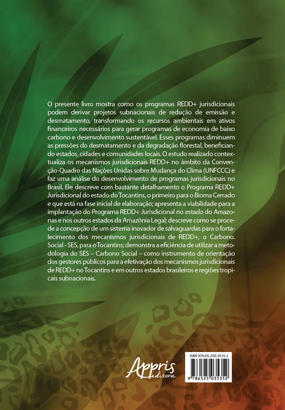 O presente livro mostra como os programas REDD+ jurisdicionais podem derivar projetos subnacionais de redução de emissão e desmatamento, transformando os recursos ambientais em ativos financeiros necessários para gerar programas de economia de baixo carbono e desenvolvimento sustentável. Esses programas diminuem as pressões do desmatamento e da degradação florestal, beneficiando estados, cidades e comunidades locais. O estudo realizado contextualiza os mecanismos jurisdicionais REDD+ no âmbito da Convenção-Quadro das Nações Unidas sobre Mudança do Clima (UNFCCC) e faz uma análise do desenvolvimento de programas jurisdicionais no Brasil. Ele descreve com bastante detalhamento o Programa REDD+ Jurisdicional do estado do Tocantins, o primeiro para o Bioma Cerrado e que está na fase inicial de elaboração; apresenta a viabilidade para a implantação do Programa REDD+ Jurisdicional no estado do Amazonas e nos outros estados da Amazônia Legal; descreve como se procede a concepção de um sistema inovador de salvaguardas para o fortalecimento dos mecanismos jurisdicionais de REDD+, o Carbono. Social – SES, para o Tocantins; demonstra a eficiência de utilizar a metodologia do SES – Carbono Social – como instrumento de orientação dos gestores públicos para a efetivação dos mecanismos jurisdicionais de REDD+ no Tocantins e em outros estados brasileiros e regiões tropicais subnacionais.