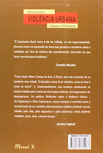 O livro ‘Reflexões sobre a Violência Urbana ‘ (In) Seguranças e (Des) Esperanças’, organizado por Jandira Feghali, Candido Mendes e Julita Lemgruber, resulta de um seminário sobre Violência Urbana realizado pela parlamentar Jandira Feghali e a Universidade Candido Mendes, onde o tema foi exaustivamente debatido sob os mais variados ângulos.