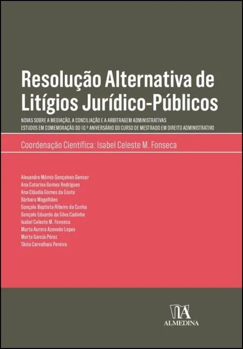 Este livro reúne textos e ensaios desenvolvidos por Docentes e Investigadores no âmbito da Unidade Curricular de Mediação, Conciliação e Arbitragem Administrativas, do Curso de Mestrado em Direito Administrativo da Escola de Direito da Universidade do Minho, versando sobre os problemas centrais de ADR atinente aos conflitos jurídico-públicos e procurando evidenciar, em tempos de transição digital, os do’s e dont’s das figuras em destaque.